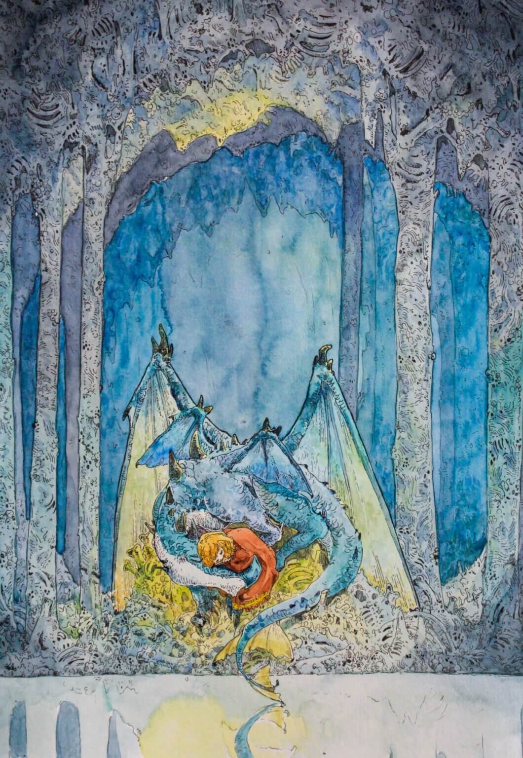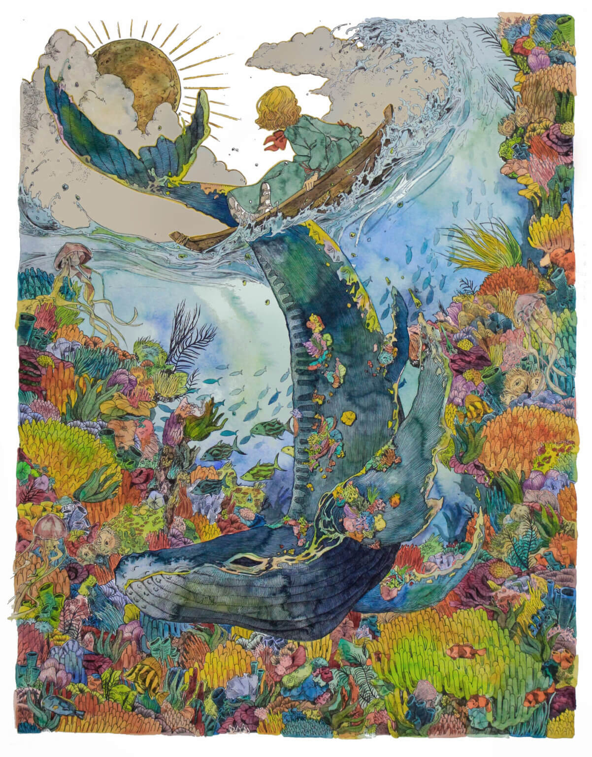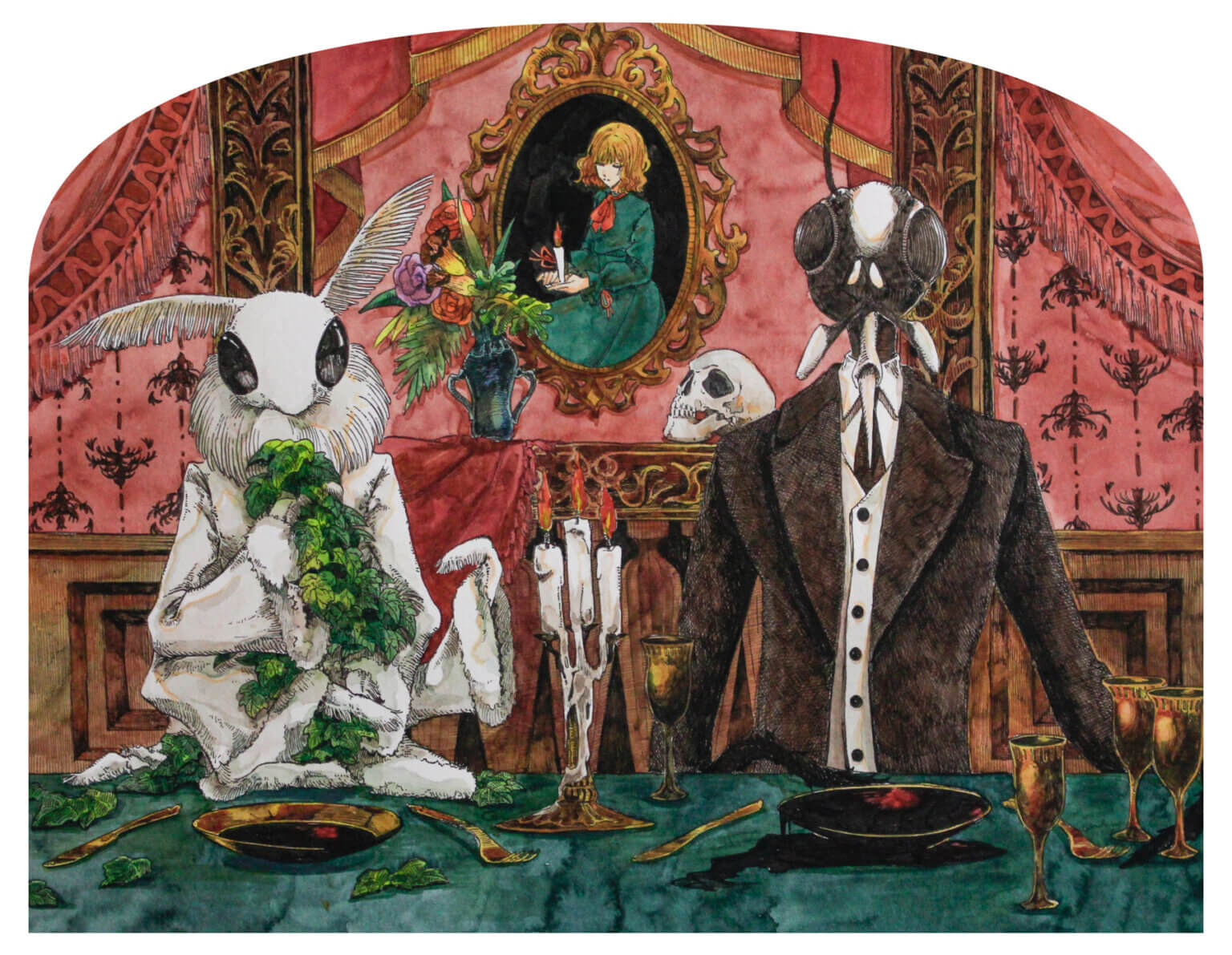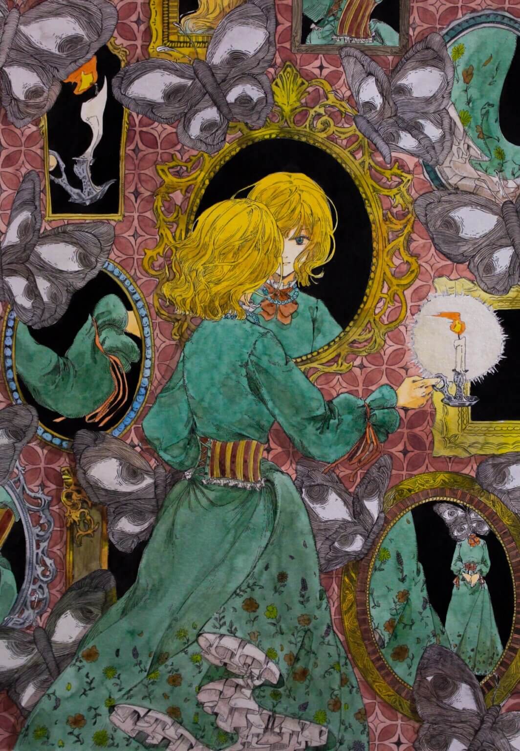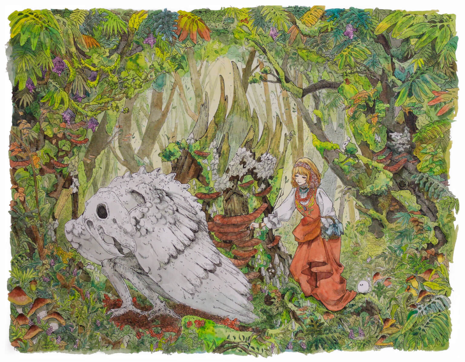ペンと水彩絵の具を使用し、繊細で美しい世界にこだわって描いた。