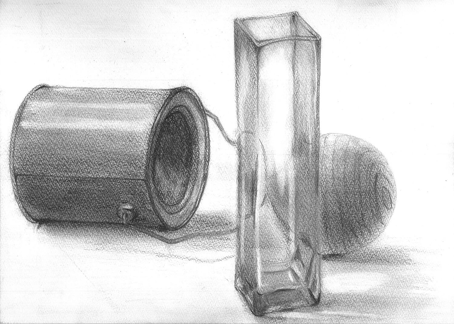 身のまわりの立体をモチーフにし、平面上に再現します。構造、量感、質感など、さまざまな〈ものの見方〉を理解し、確かな「観察力」を養います。