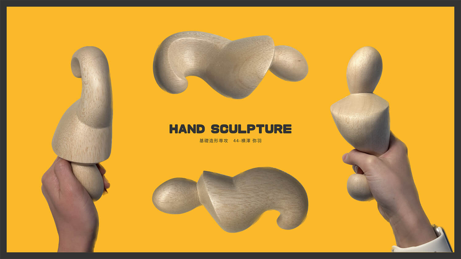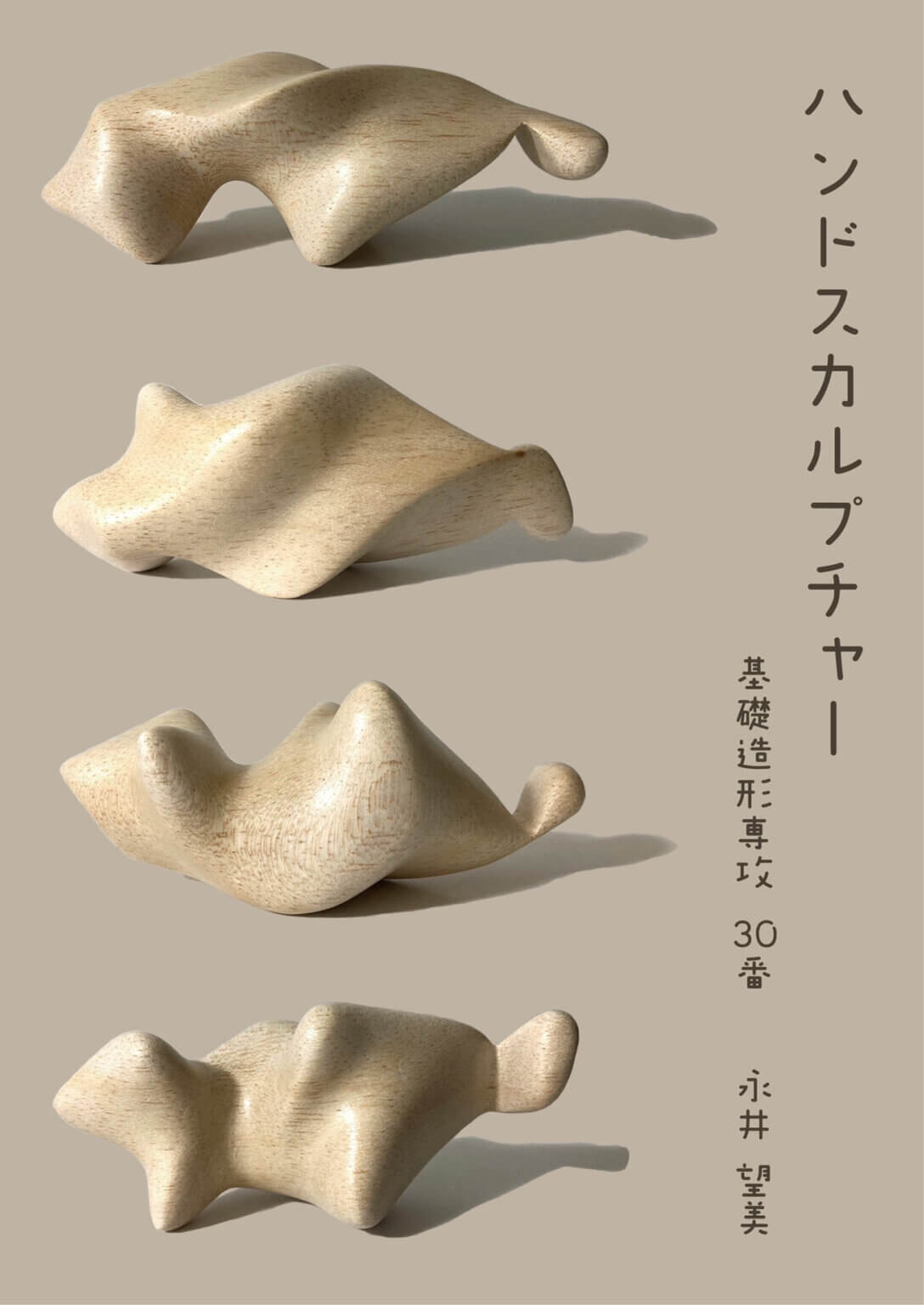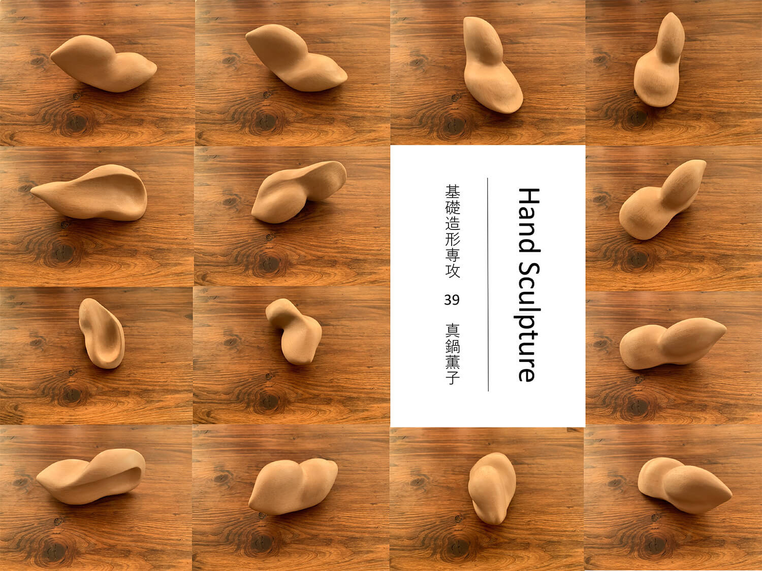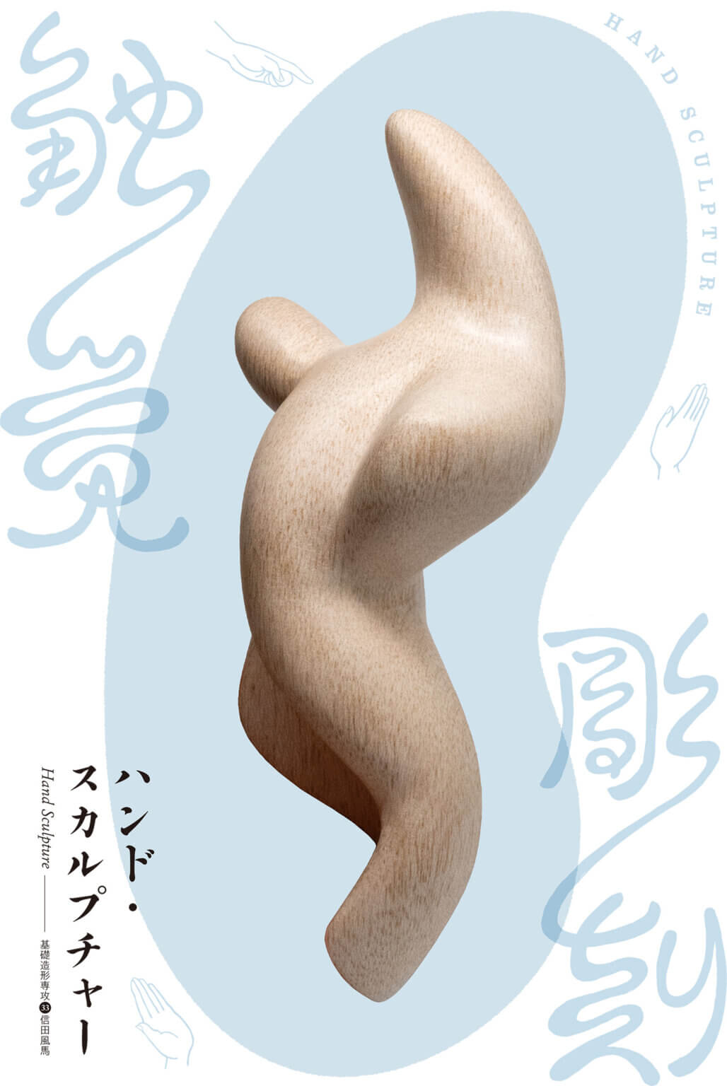 木材をのこぎりやナイフを使って〈手に調和する形〉に削ります。視覚的な美しさではなく、触覚を判断基準とすることで、予想外の造形が生み出されます。〈発見〉や〈ひらめき〉をうながす課題のひとつです。