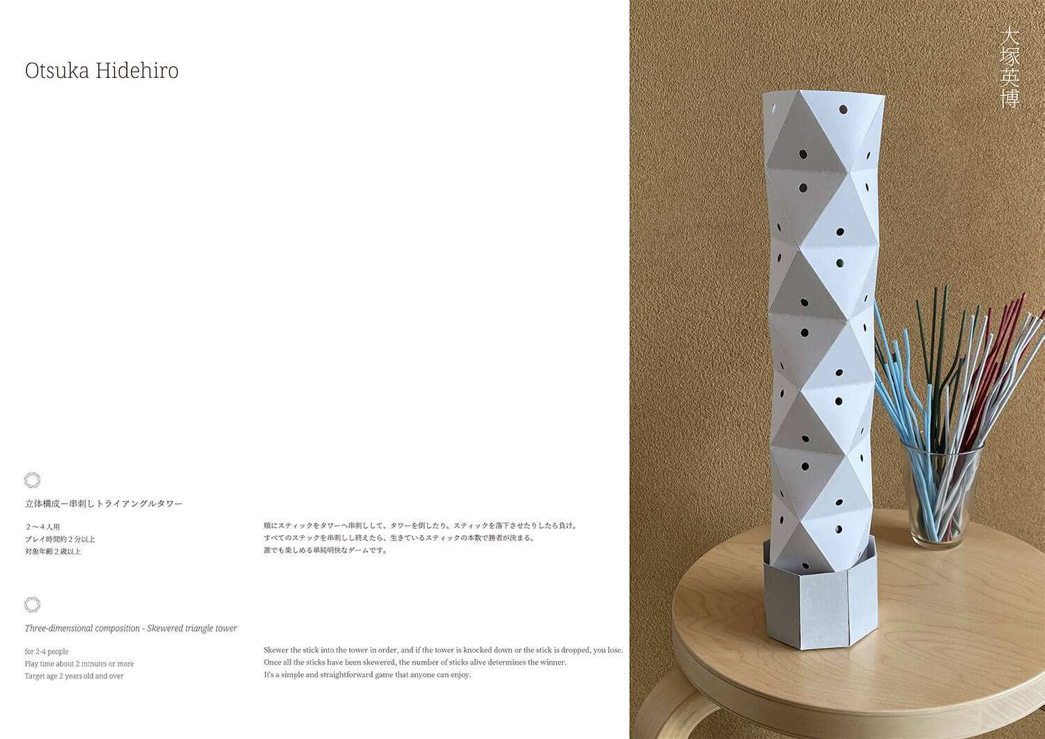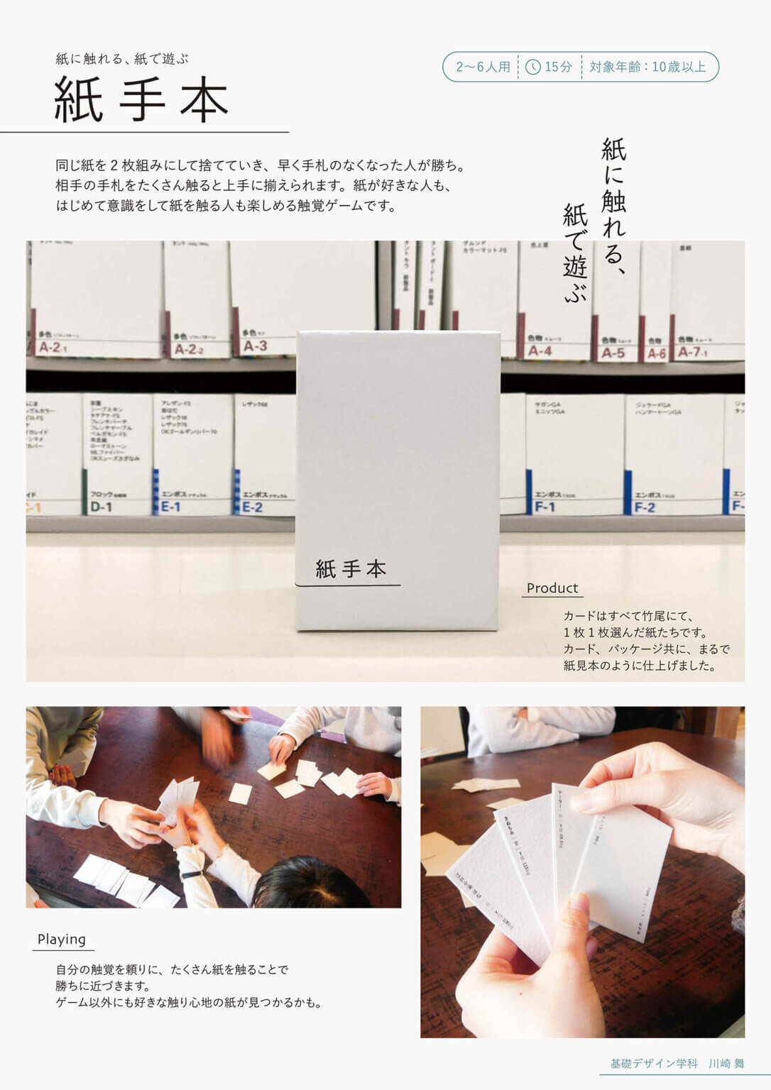 総合的なデザインのプロセスを体験します。共同で既存のかたちを研究しながら、新たな設定や規則を考案し、<遊び>の愉しさのなかで、プレイヤー間の関わりをつくります。