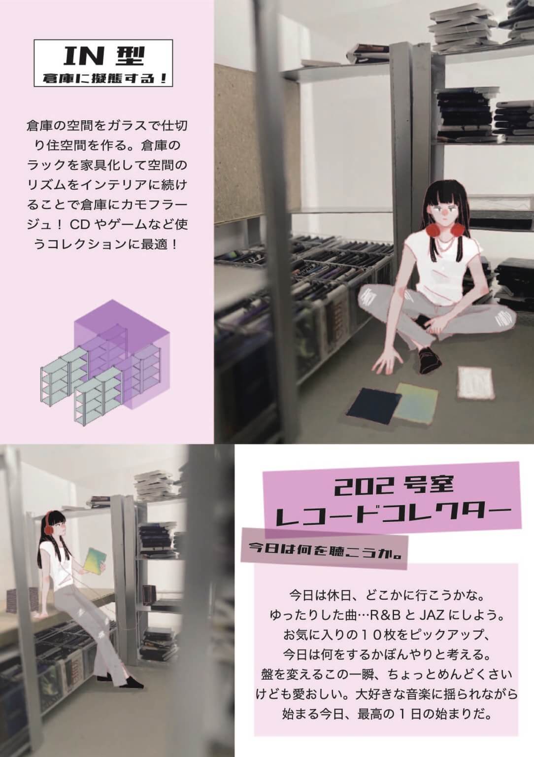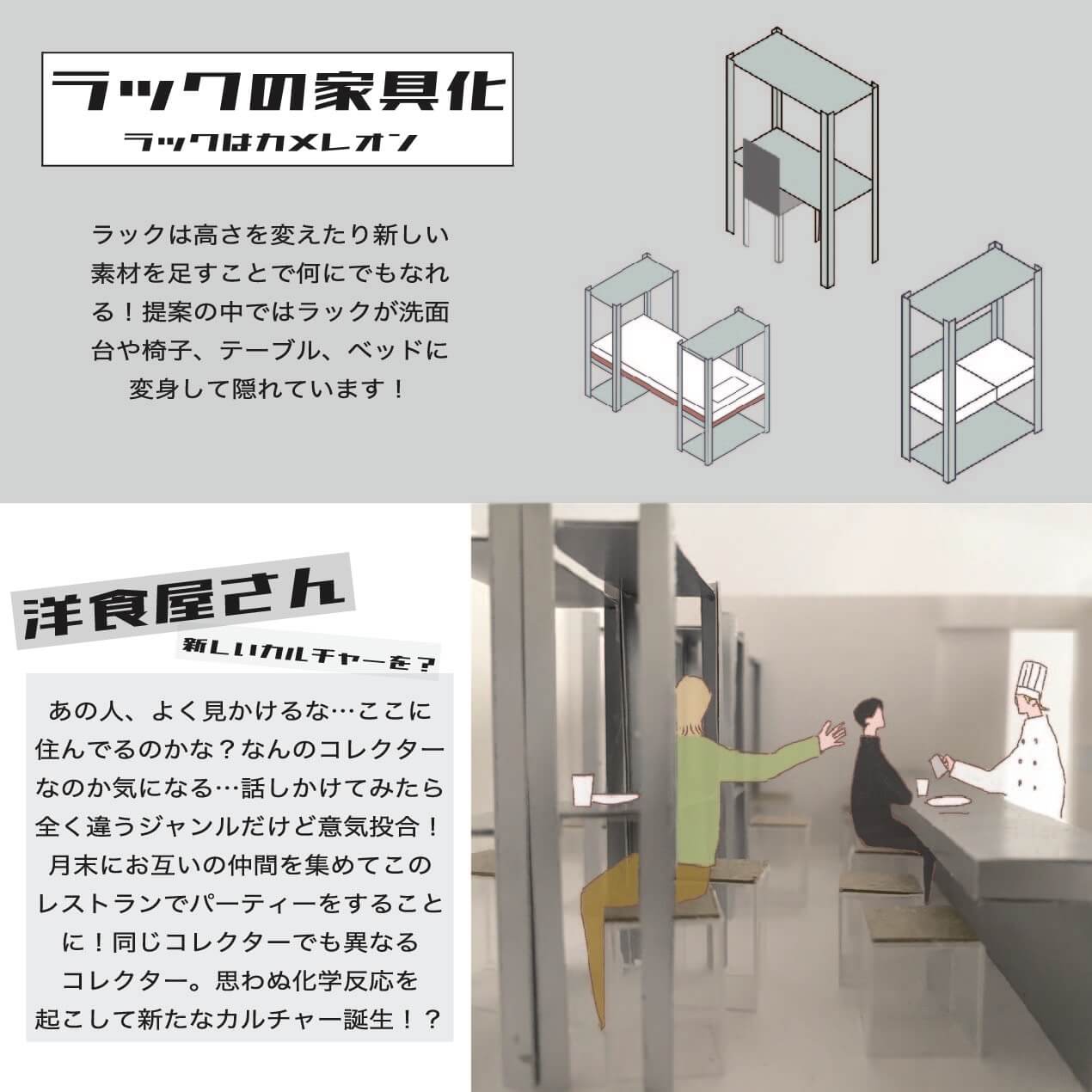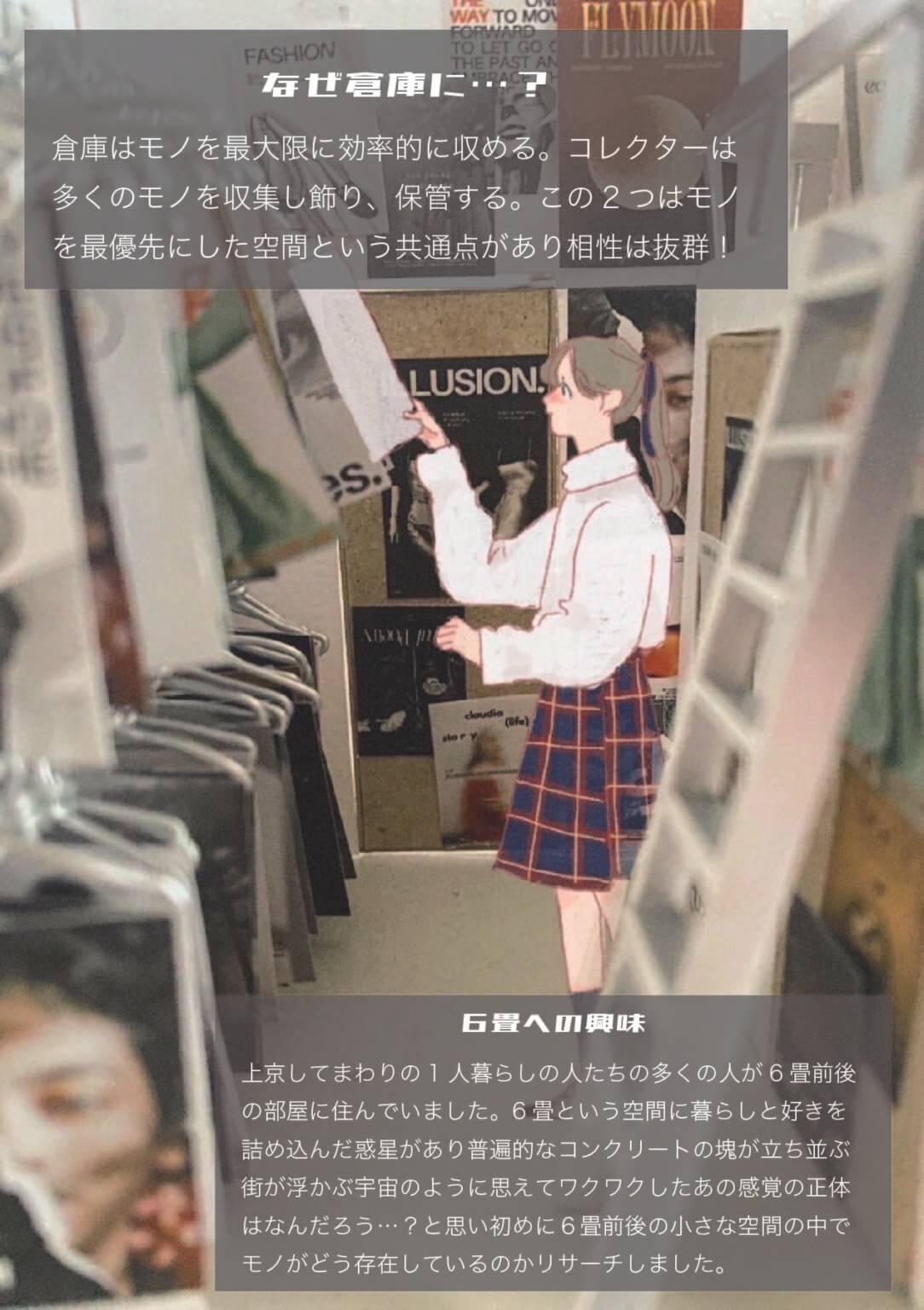 モノを偏愛し収集するコレクター。その部屋はモノでつくられた人間巣のような空間であり自分の” 好き” に没頭できる空間。既存の異なる用途を持った空間をモノで構成し、寄生することで住空間に変化できるのできるのでは…!そこで私は空間に寄生するためのデザインをしました。