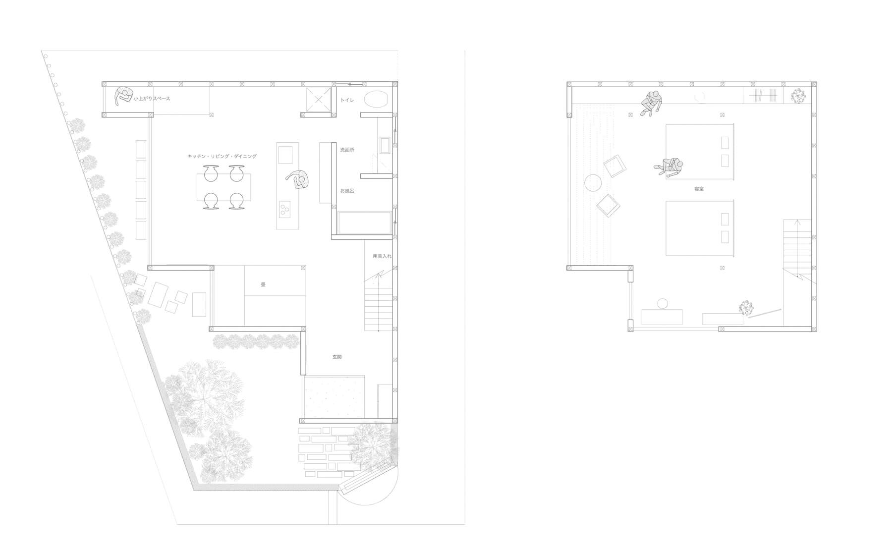 寛げる居場所を探して欲しいという思いから、その人その時の気分で畳、床、小上がり