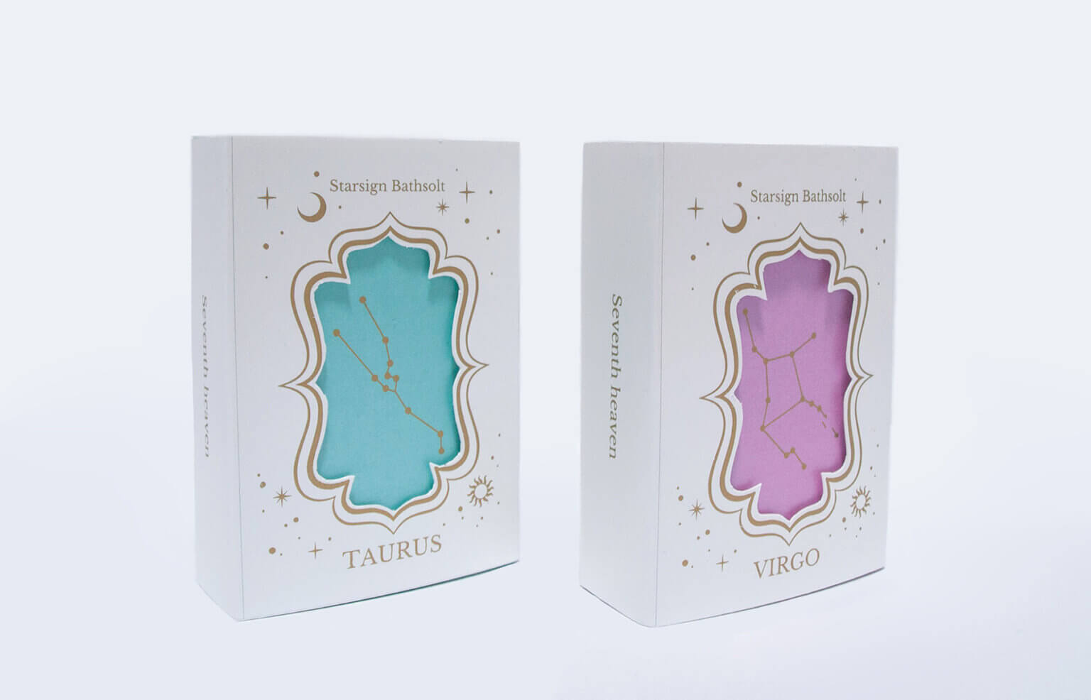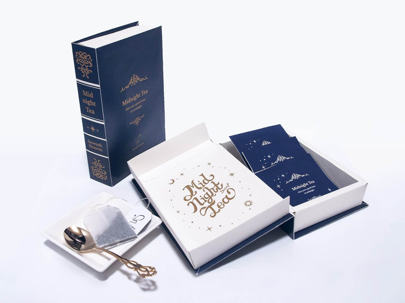 日々忙しい女性たちに、夜寝る前の「自分時間」という天国のような時をプレゼントするブランド。パッケージは夜空をイメージした濃紺に、「第七天国」と呼ばれる7つの惑星やそれを囲む星々をデザインした。ブランドロゴはブランド名のイニシャルを天使の羽の形に整えている。商品には寝る前の身体にも優しいノンカフェインの紅茶やジャム、クッキーなどを設定した。また、夜というコンセプトに合わせてバスソルトなどのバスグッズも制作した。