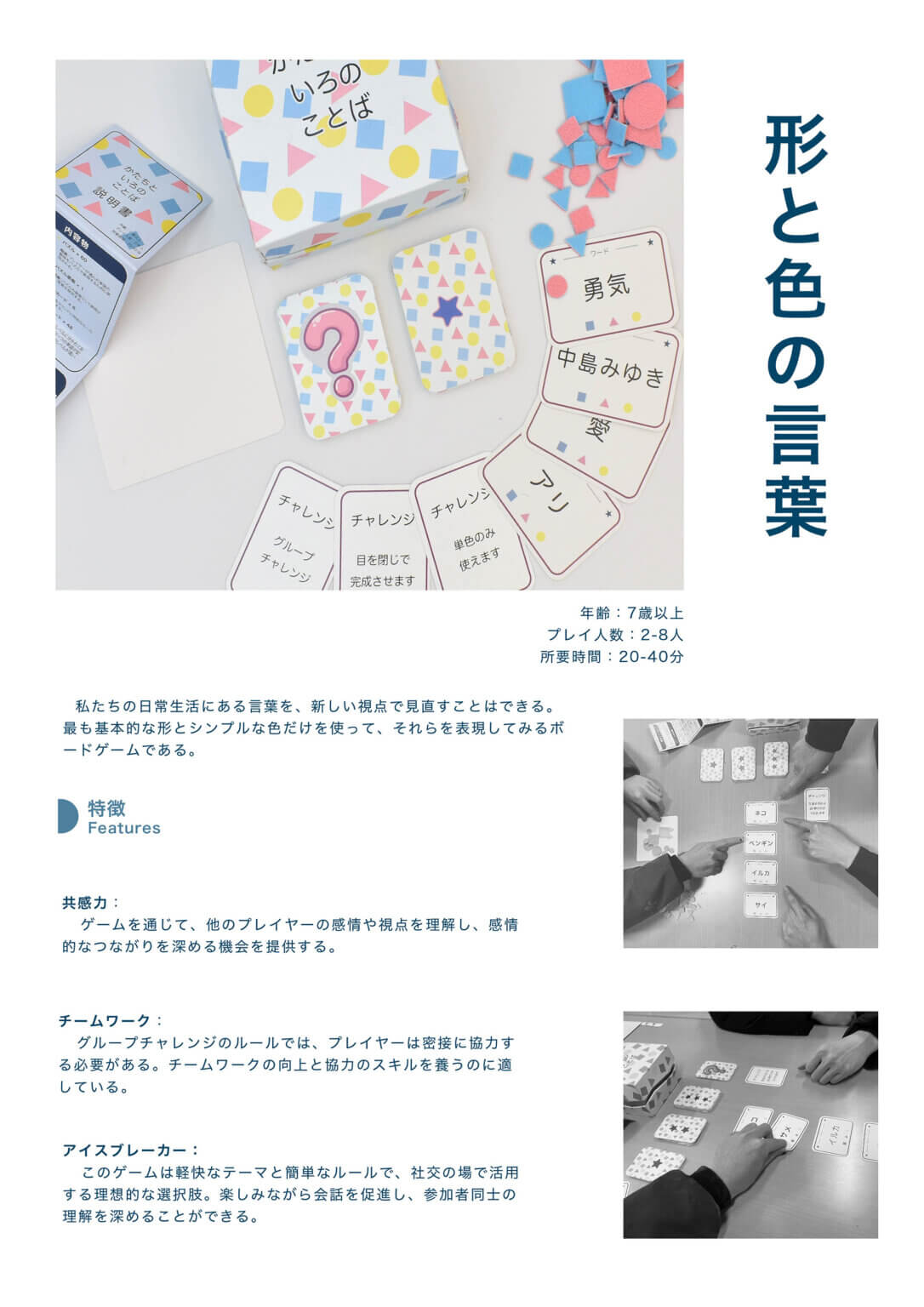 総合的なデザインのプロセスを体験します。共同で既存のかたちを研究しながら、新たな設定や規則を考案し、<遊び>の愉しさのなかで、プレイヤー間の関わりをつくります。