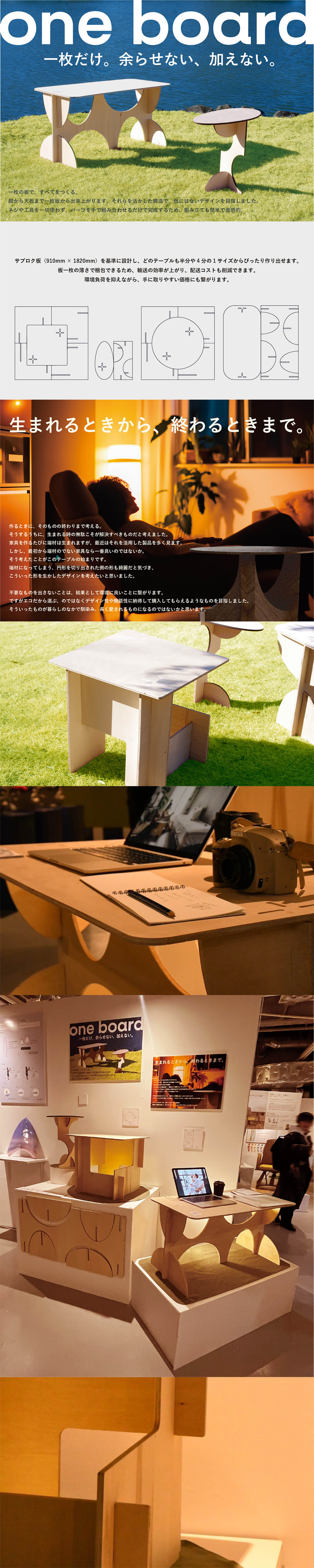 端材を出さずに一枚から完成するシリーズテーブル