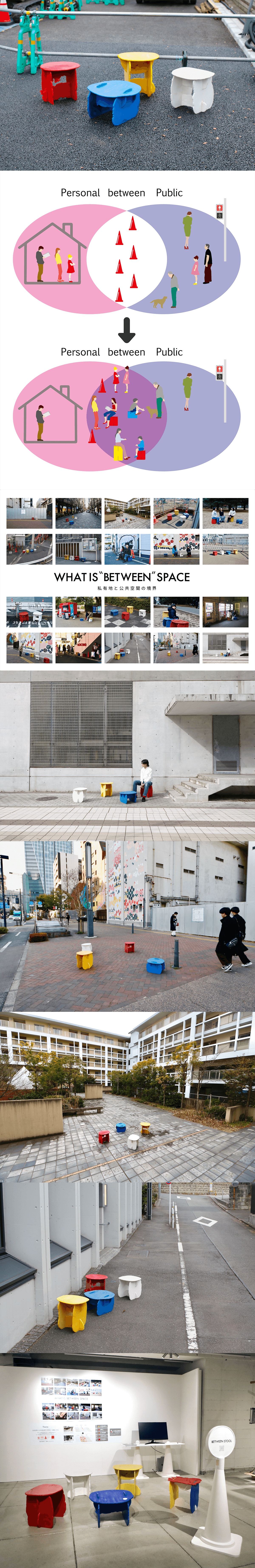 都市での人々の行動を観察し、多くの日本の都市では、人々の距離が広がり、休息できる温かさを感じる場所が少ないと感じました。そこで、私有地と公共空間の間にある「BETWEEN(境界の空間)」に着目し、公共空間と私有地を行き来する人々が自然に繋がる温かな空間を作るため、「BETWEEN(境界の空間)」に設置する誰でも使える屋外用スツールをデザインしました。