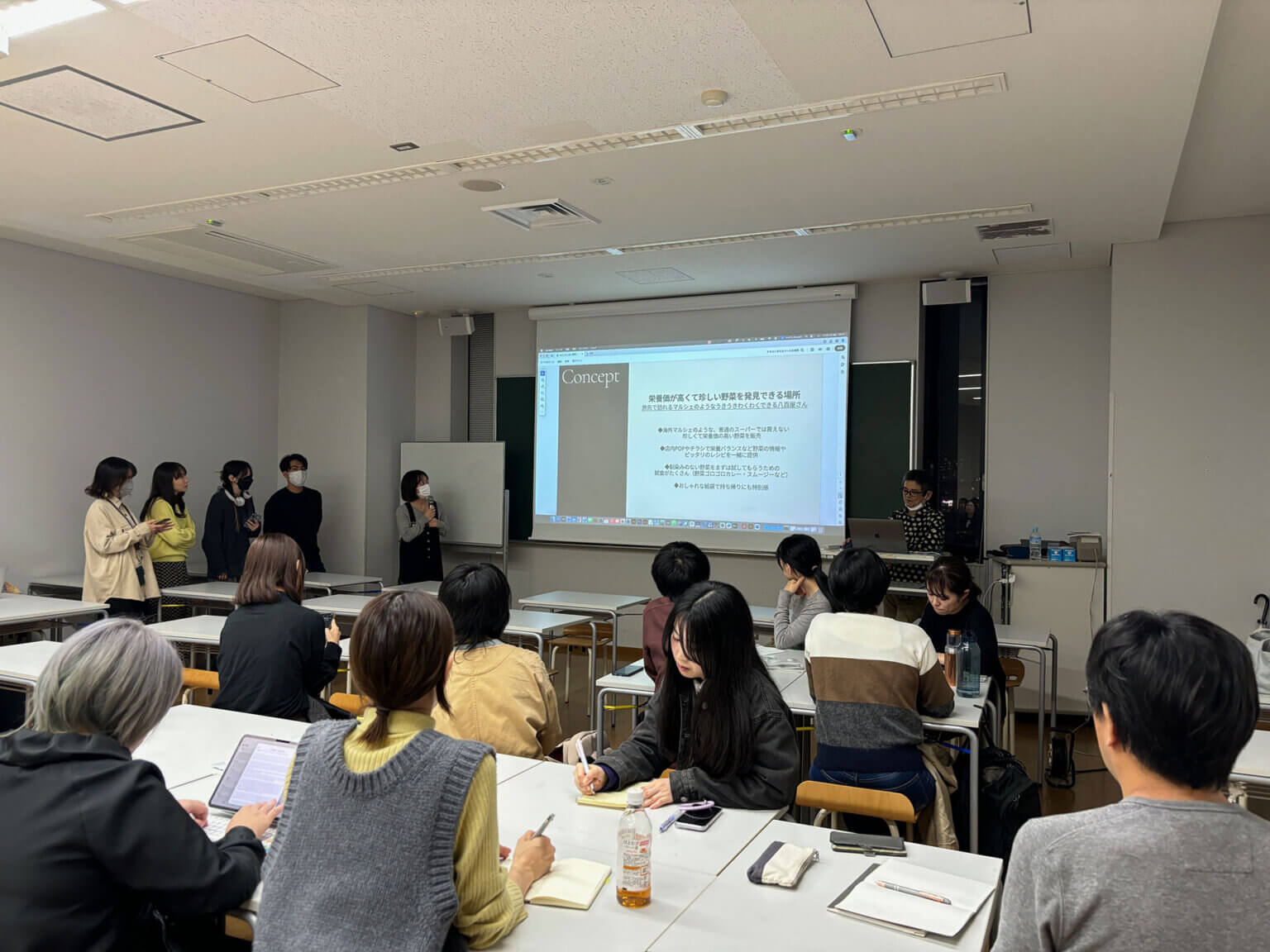 ビジュアルデザインの基本的なプロセスを体験します。特にリサーチ(調査・観察)を軸に、さまざまな視点から「~らしさ」を見出し、その成果をロゴマークなどへ色・形を整えることで、表現・伝達をはかります。
