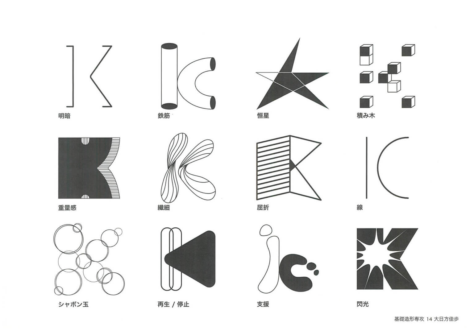 〈点〉〈線〉〈面〉などの形の要素の組み合わせや、変形、階層、立体化などの操作を用いて表現の可能性を探っていきます。