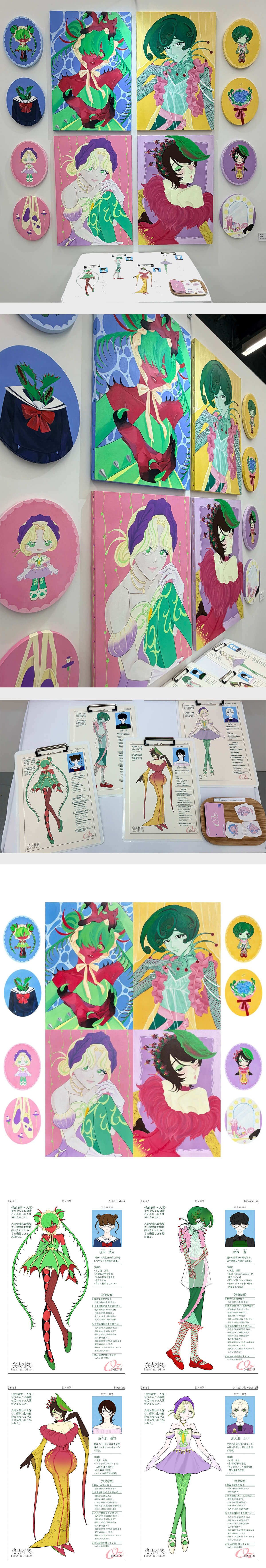 左から順にハエトリグサ・ドロソフィルム・クリオネミミカキグサ・ネペンテスをモチーフに制作しています。