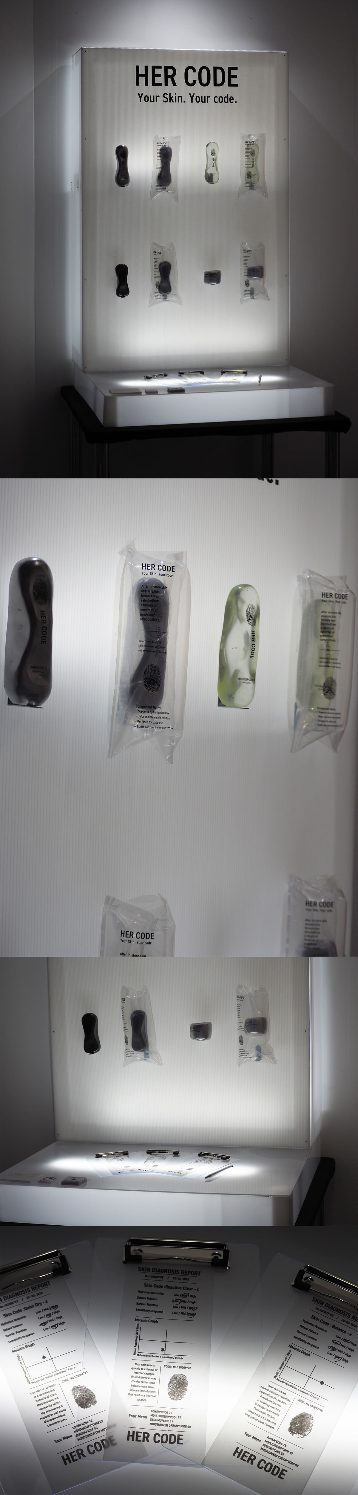 ボトル形状には触れるという動きとDNAのらせん構造を組み合わせ、近未来的なフォルムで表現しました。