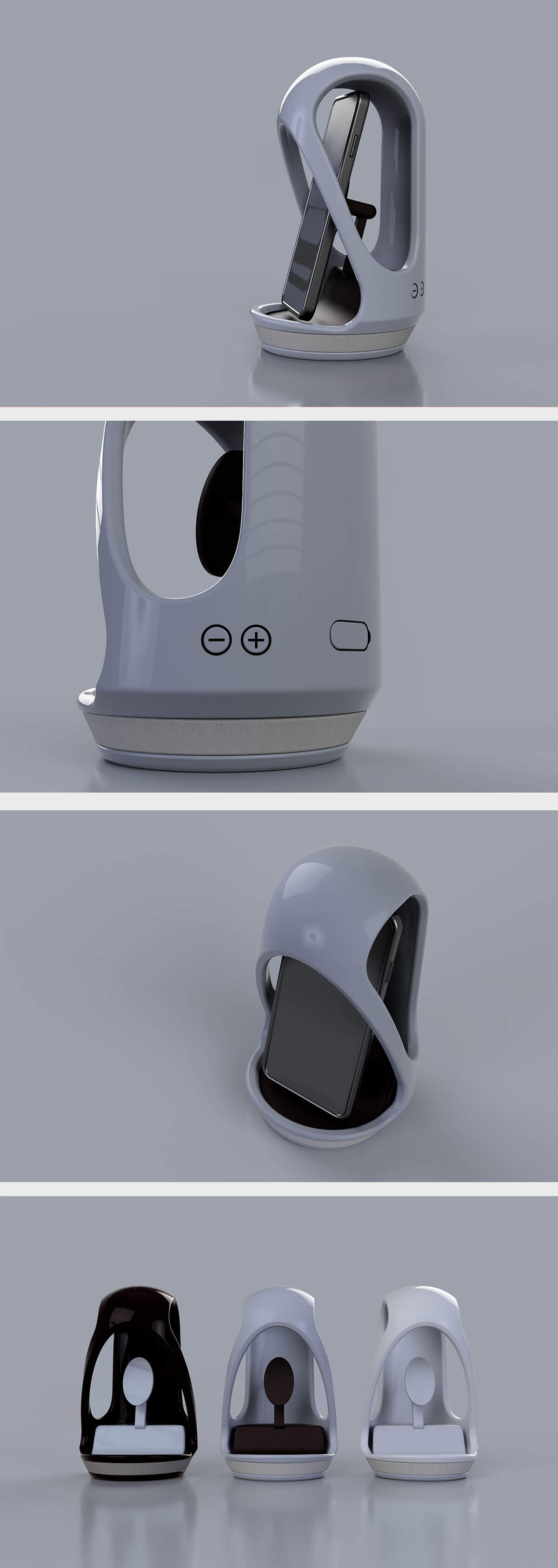 この作品は、スマートフォンの拘束から解き放たれ、日常のBGMの効果を最大限感じられるように考えられたスピーカーです。