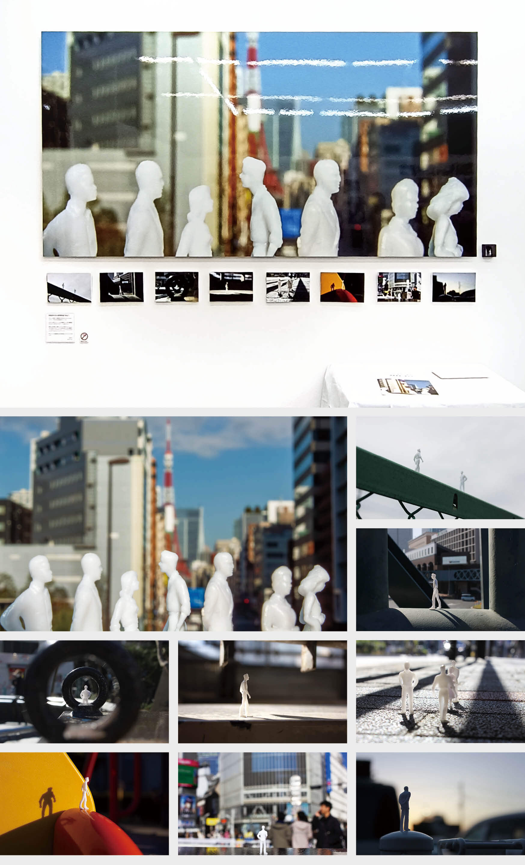このような人の模型は、建築模型と組み合わされることが多く、そのスケール感はある程度固定されています。そのため、現実のスケールの中に配置すると、強い違和感が生まれます。本作では、そのギャップに着目しました。