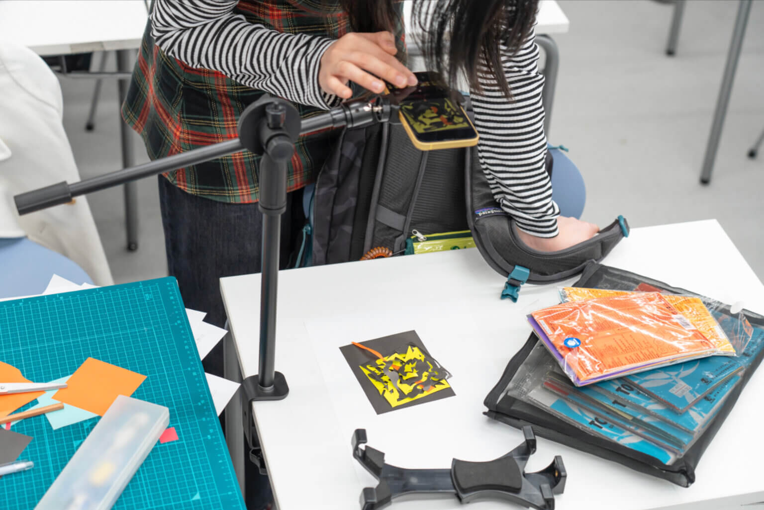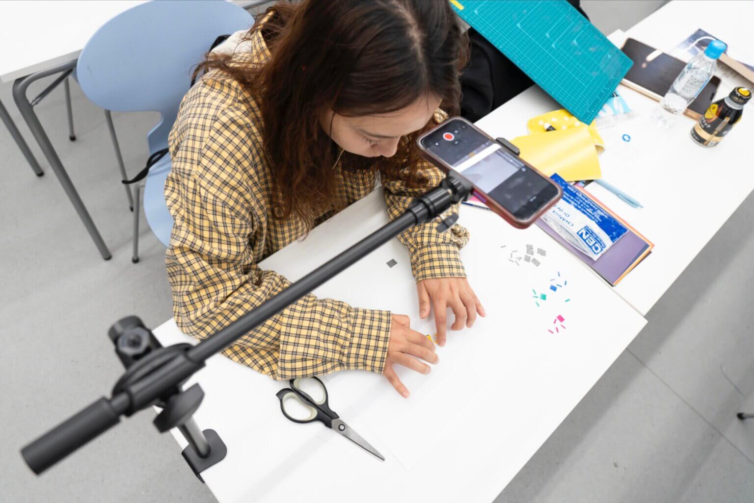 身の回りにある音を採取し、その音に合わせてストップモーションアニメをつけていきます。アニメーションは複数の画像の集まりです。その原理を手を動かして理解しつつ、映像を作り出してみます。