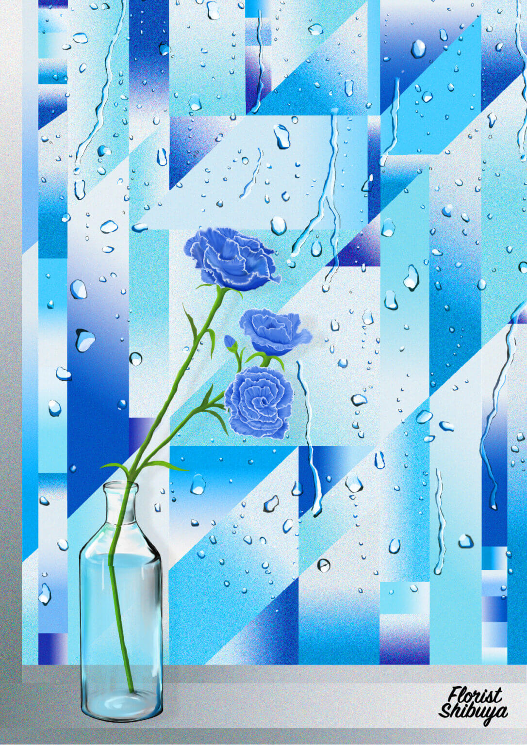 窓辺に置かれた花をコンセプトに制作した。何気なく目にしている景色も花を添えるだけで美しく、儚くも見えるといった花が持つ周りを演出する力を描いたイラストポスターになっている。各々雨の日、晴れの日の夕日をテーマに花を演出する景色、景色を演出する花の両方を魅力的に見えるように描くことを心掛けた。