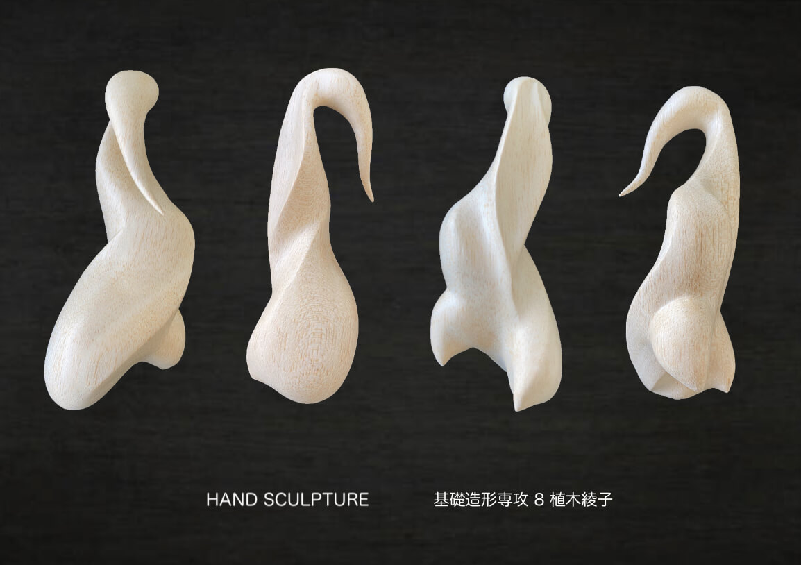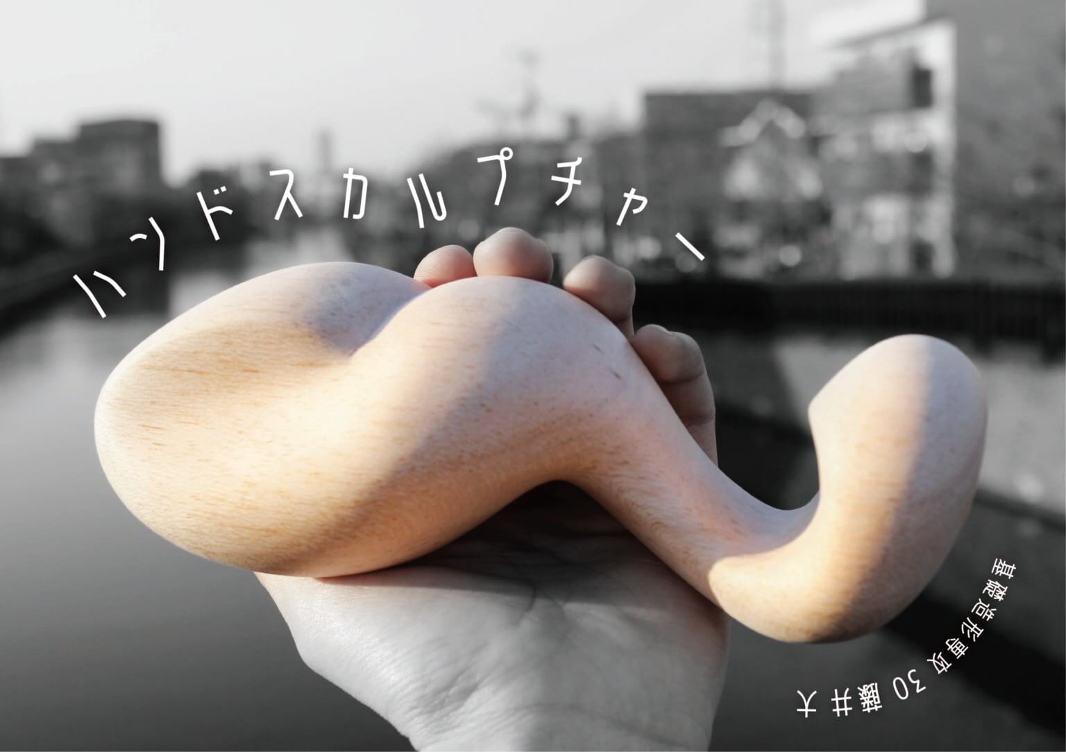 木材をのこぎりやナイフを使って〈手に調和する形〉に削ります。視覚的な美しさではなく、触覚を判断基準とすることで、予想外の造形が生み出されます。〈発見〉や〈ひらめき〉をうながす課題のひとつです。