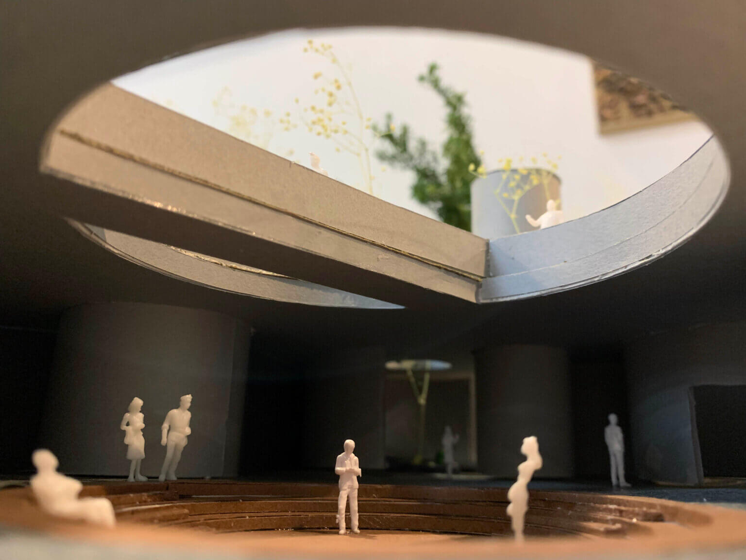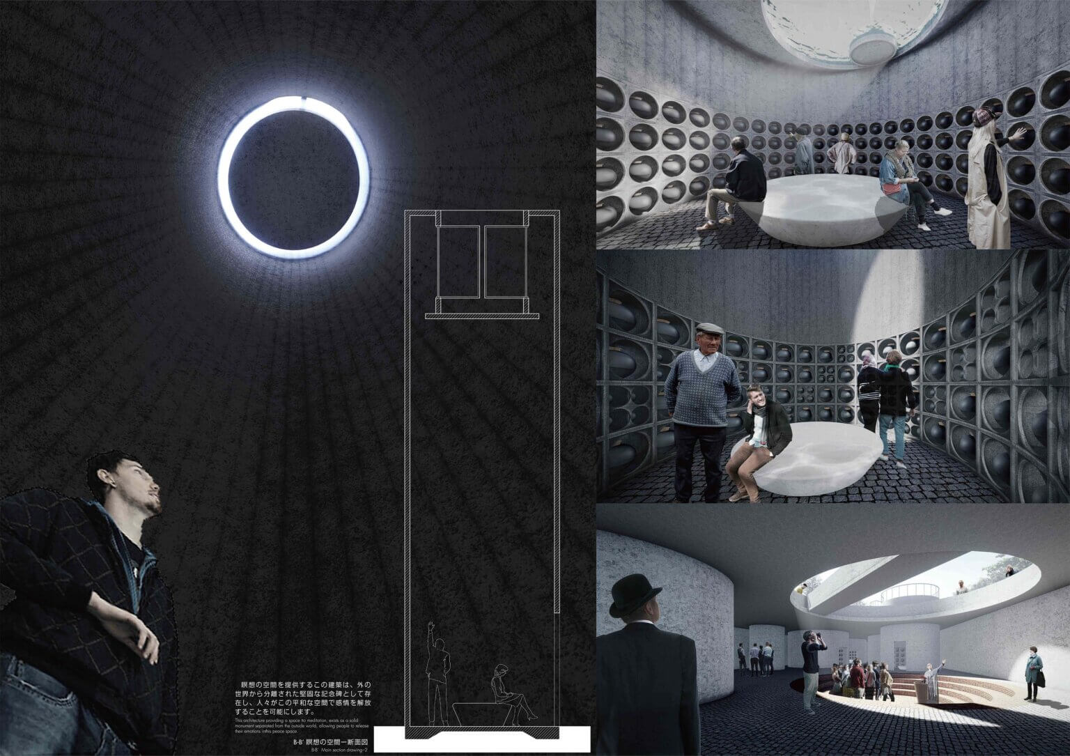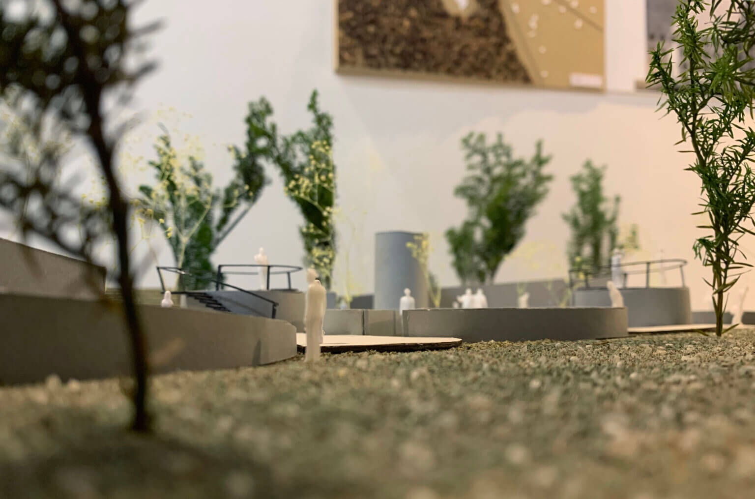 自分の卒業制作は国際的な建築コンペの提案です、自分の「死生観」を考えて、様々な空間体験、ランドスケープなどを作りました。愛する人が亡くなった人を訪ねることができる、立派な慰めの場所をデザインしました。