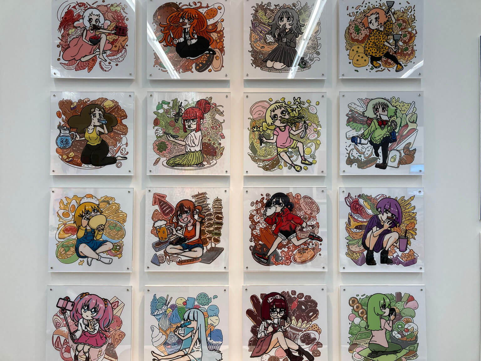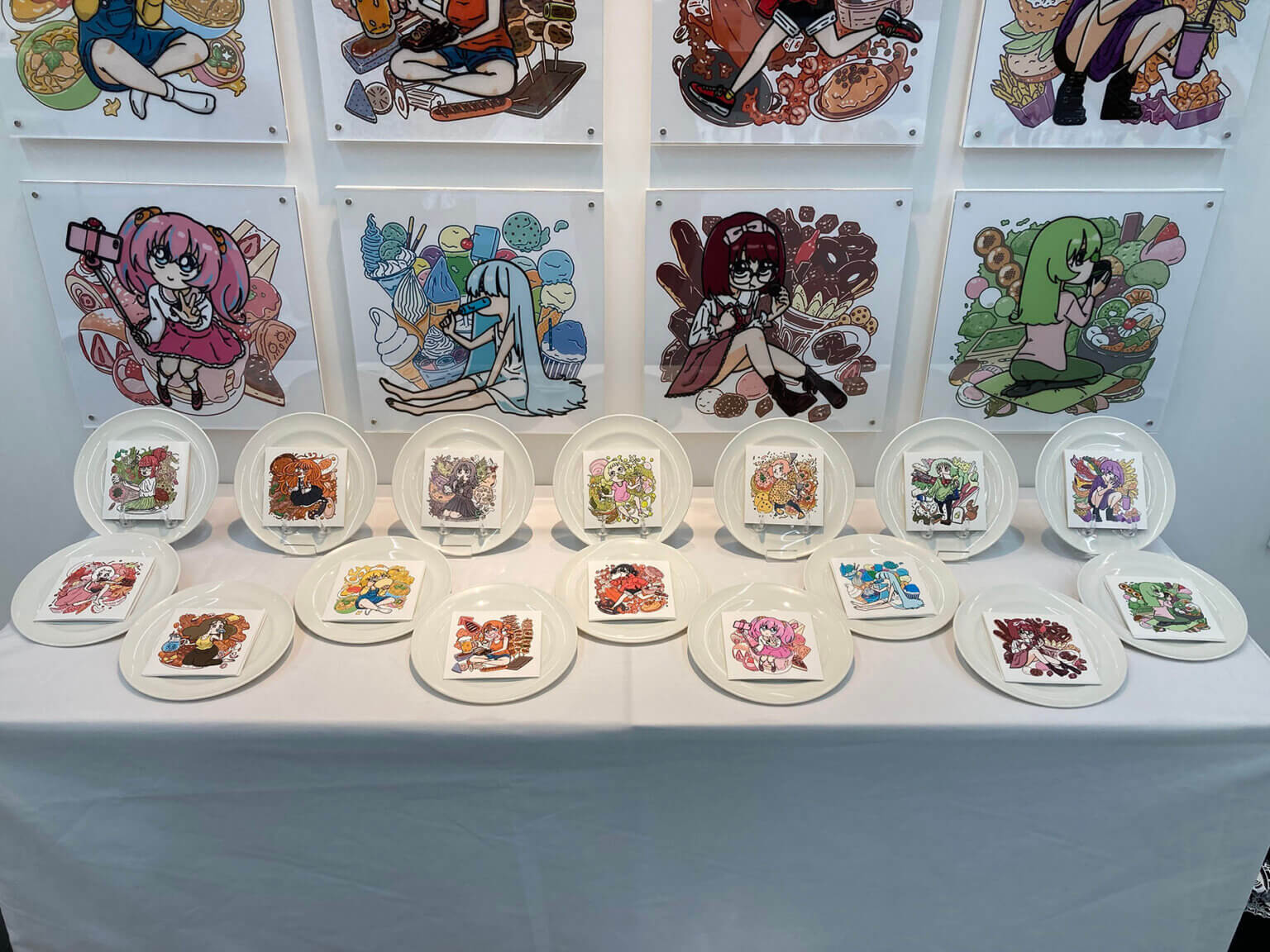 女の子と食べ物と色々なものが集まっているのが好きなので、手前に女の子、後ろに食べ物がモリモリ集まっているイラストを描きました。