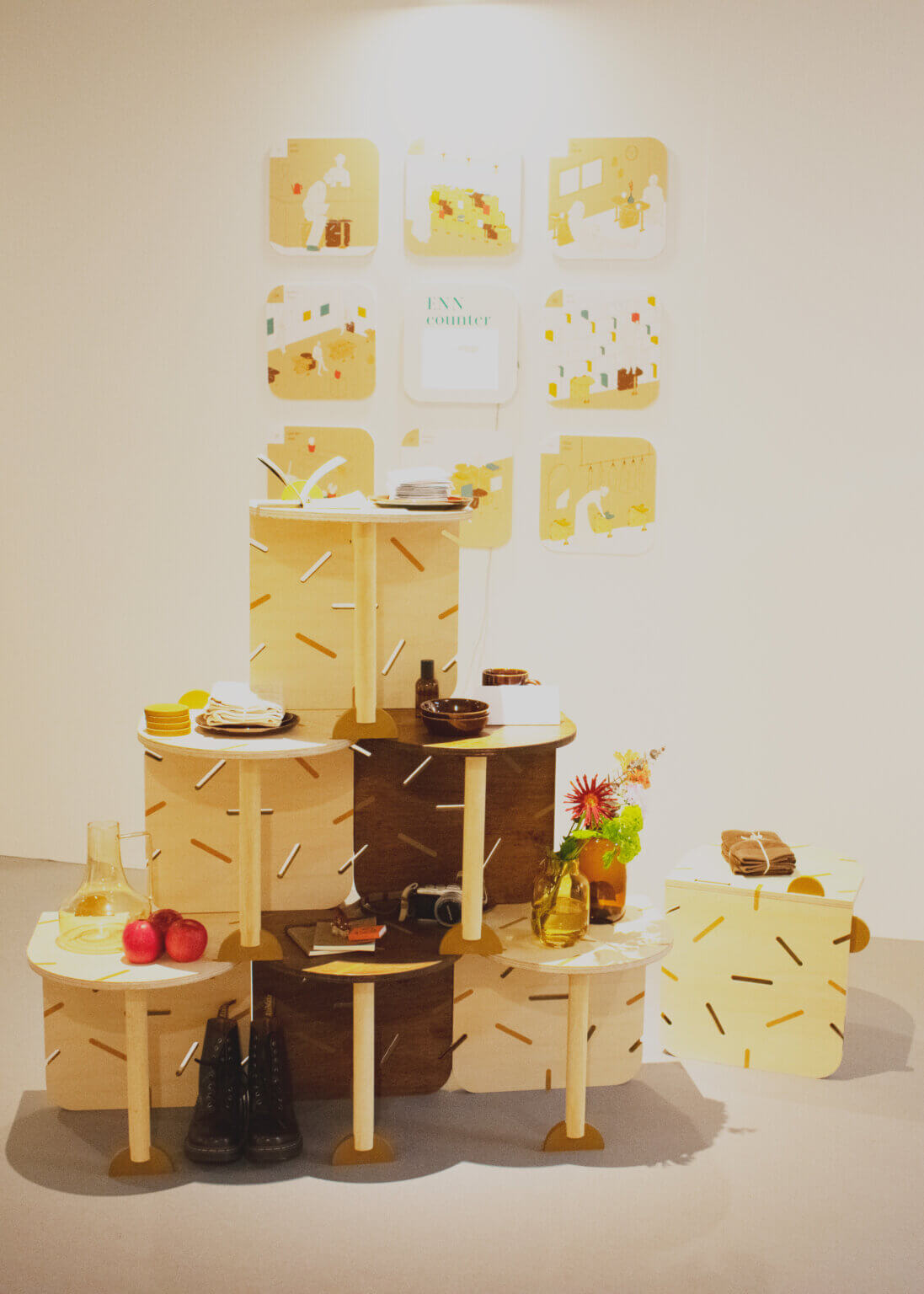 そこで、1つのスツールを起点に「繋ぐ」ことで、様々な人の暮らしに合わせてラフにカタチを変えることのできるエレメントを制作しました。