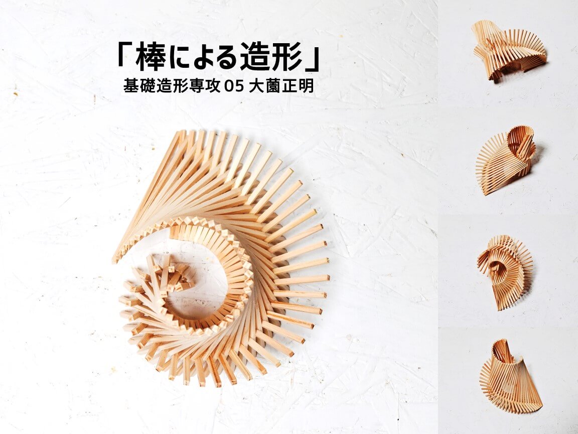 線材の特徴は〈長さ〉と〈方向性〉です。それを計画的に連続・集積させることで、生み出されるリズム感や動きなどの表現効果を学びます。形を〈体系的〉に理解して〈計画的〉に操作する「構成力」を養います。